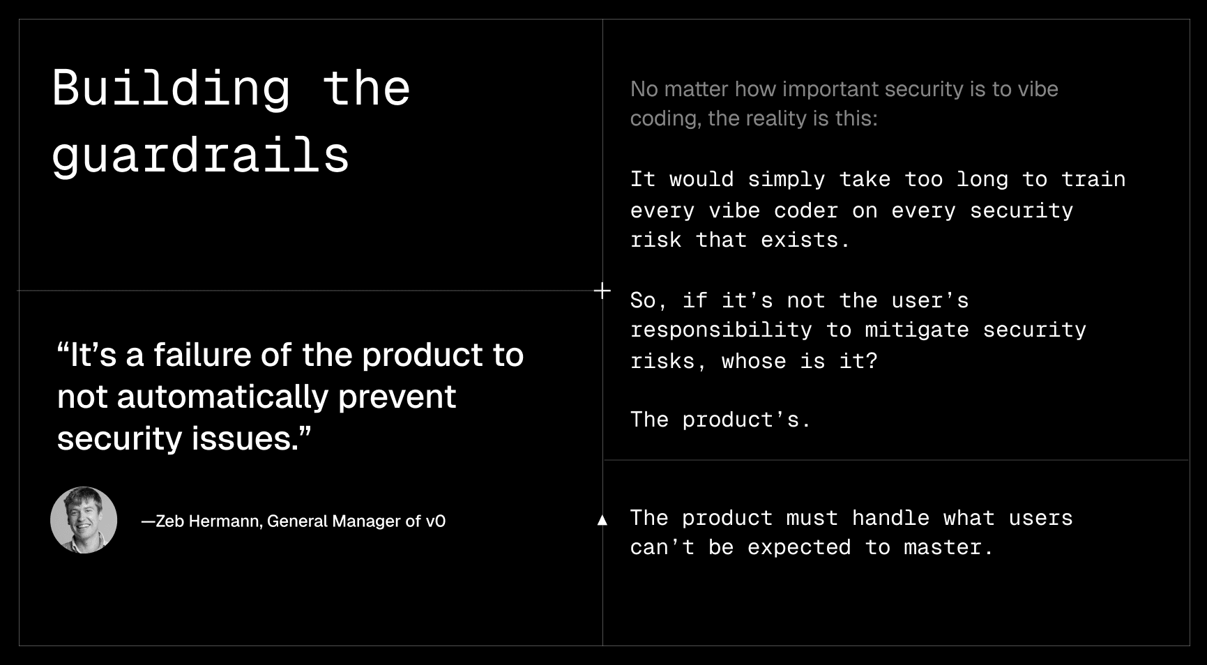 As more people adopt vibe coding, security has to be built into the tools themselves. Since not every user can be trained to manage these, the responsibility falls to the platforms.