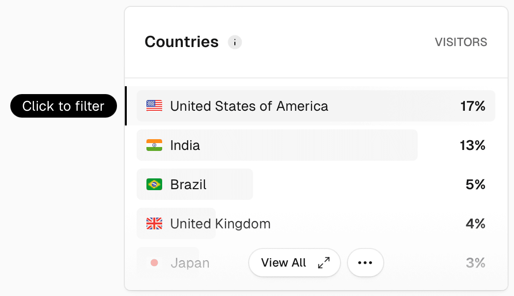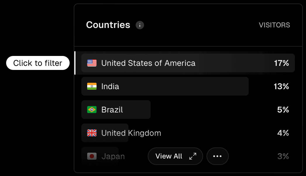 1. Go to the Countries panel, select View All to bring up the filter box.
