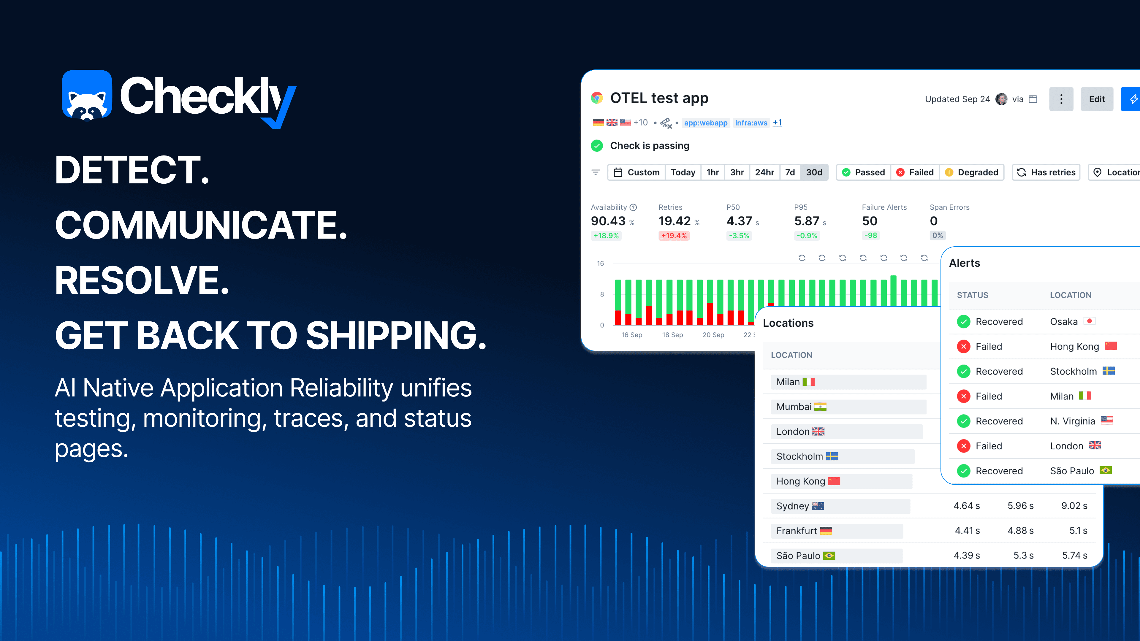 Checkly enables organizations to unify testing, monitoring, observability, and incident management into a coded workflow. Checkly's approach of monitoring as code enables organizations to automate & scale their testing and monitoring using LLMs or hosting provider's like Vercel like never before: