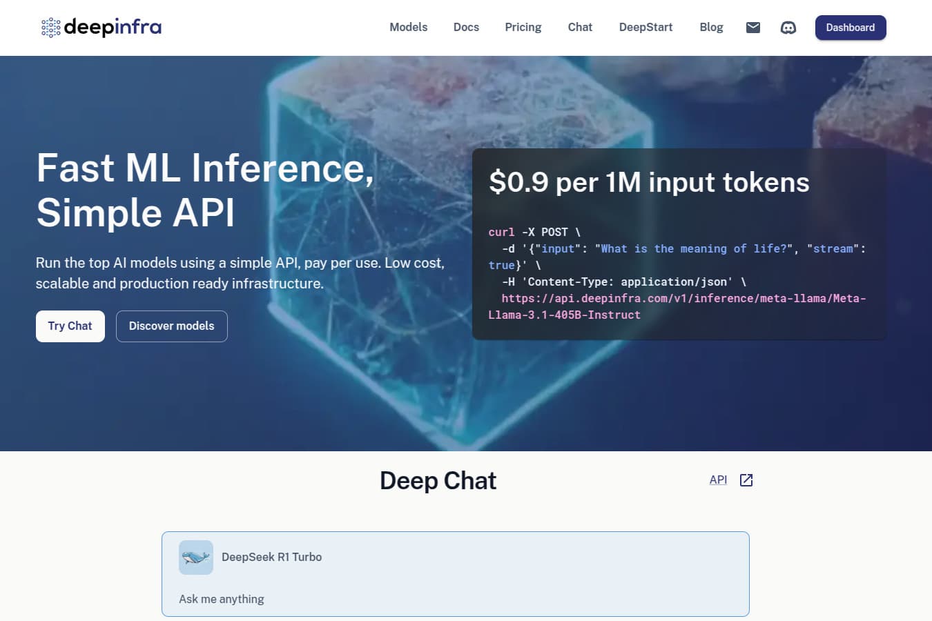 Deep Infra is a platform that provides scalable and cost-effective infrastructure for deploying and managing machine learning models, particularly large language models (LLMs) and other AI workloads. It aims to simplify the process of serving AI models at scale by offering optimized infrastructure, reducing latency, and lowering costs compared to traditional cloud providers.